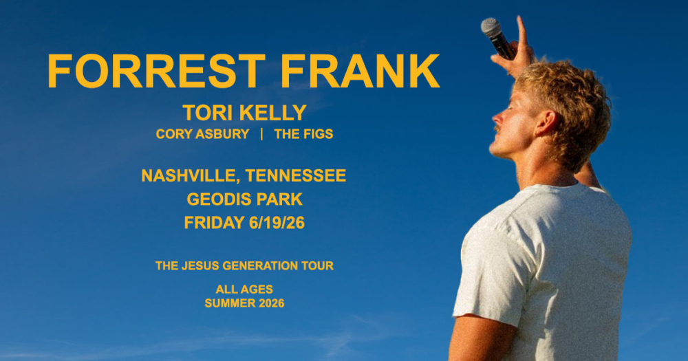 Forrest Frank: The Jesus Generation Tour is headed to GEODIS PARK on Friday, June 19th! An all ages worship experience with special guests Tori Kelly, Cory Asbury, and The Figs.