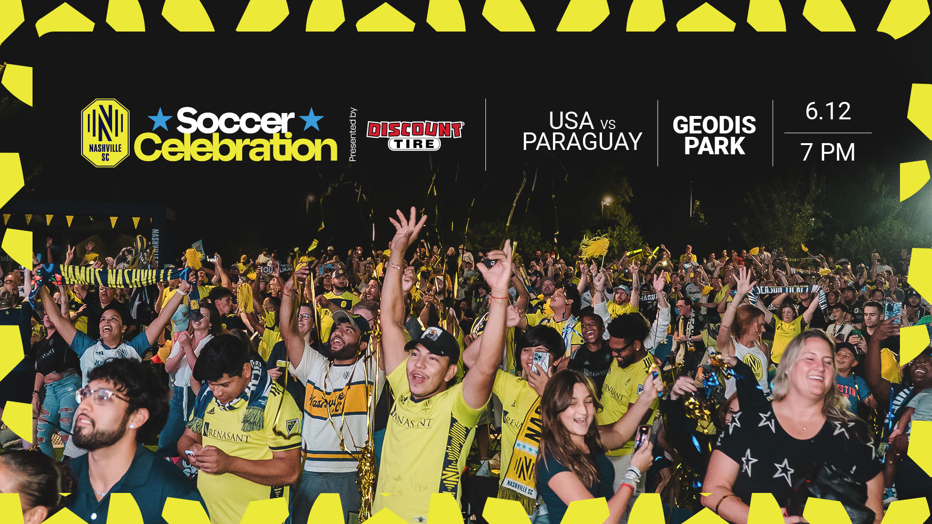 Kick off Summer with Nashville’s biggest soccer party. Join Nashville SC and presenting partner Discount Tire at GEODIS Park for a free Soccer Celebration featuring food and beverages, fan activations, music, and fun for everyone. Plus a live showing of the USA’s opening match versus Paraguay on the World Stage.