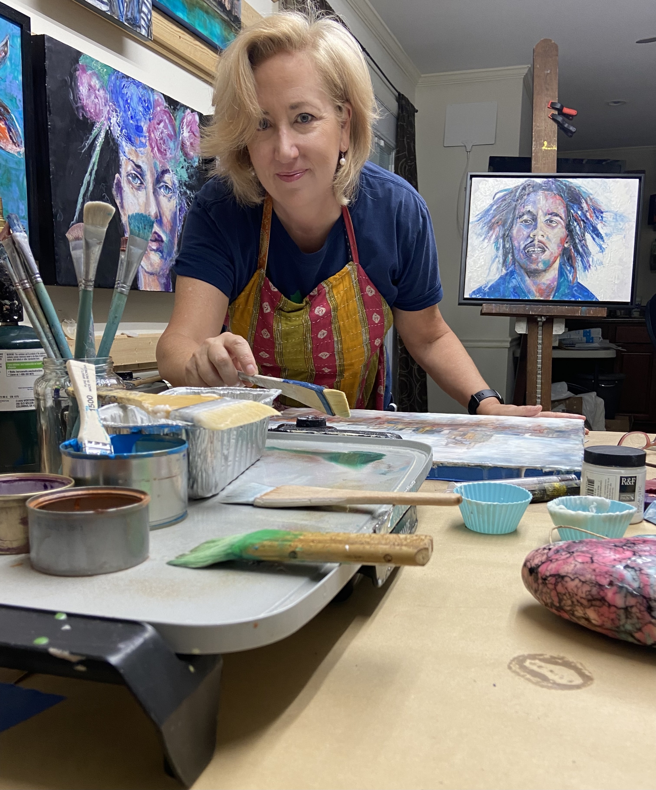Marla Faith is an artist in Nashville,TN. She has had a career teaching art and art history in schools, and directing education programs in art museums while consistently creating her own art. She grew up in Chicago, and moved to Nashville from New York in 1990. Ms Faith has a BFA in Painting from the School of the Art Institute of Chicago, and an MS in Museum Leadership from Bank Street College in NYC. She has exhibited her artwork across the country, including one person shows at The Parthenon of Nashville and twice at The Nashville Airport. Ms Faith is a prolific artist of unique oil paintings, drawings, and mixed media collages, with emphasis on upcycled materials and fabrics. Her art is in private collections in New York, California, and Nashville, and can be seen at marlafaith.com. |