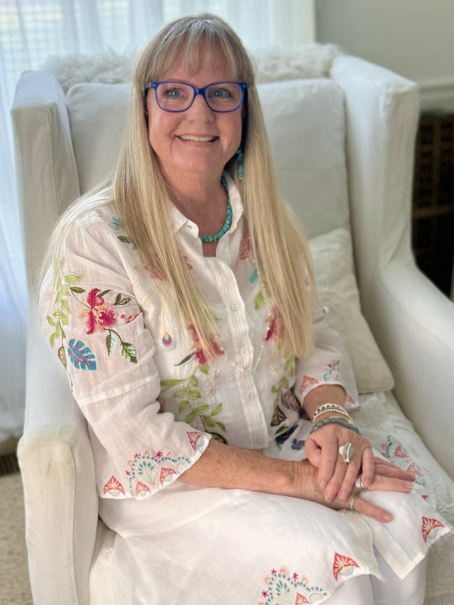 Beth LaPenna is a Nashville-based artist whose creative journey spans decades of exploration and expression. Drawing from her background as a professional interior designer, Beth infuses her artwork with a keen eye for composition and a sophisticated sense of color. Her transition from design to painting and collage art has allowed her to fully unleash her imagination, resulting in captivating pieces that invite viewers into vibrant worlds of texture and emotion. Her dedication to her craft, combined with her passion for storytelling and connection, fuels her desire to share her art with the world. “Homeward Journey” is a heavily textured collage made with ribbons of handprinted collage paper sewn together. These ribbons weave through the collage as though you are floating in the ocean on your way home. |