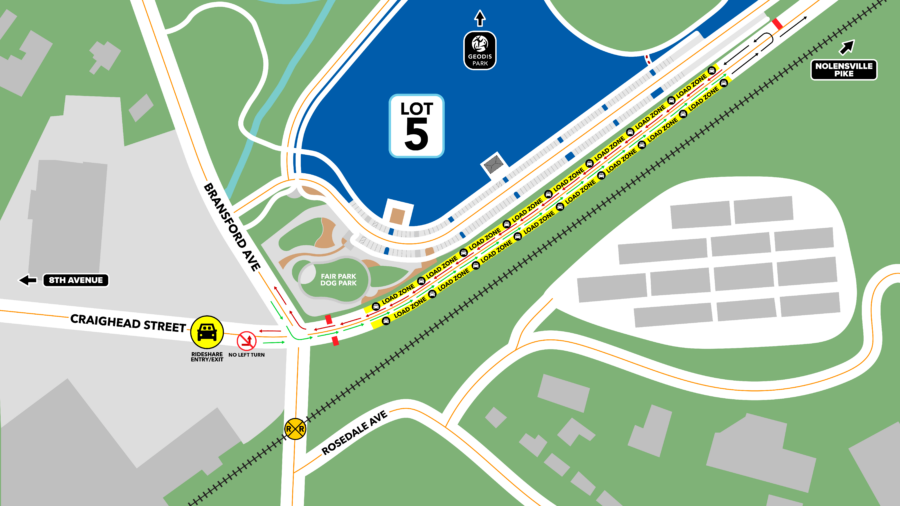 In an effort to accommodate more vehicles at GEODIS Park, the designated rideshare drop off and pickup has been shifted to Craighead Street. The GEODIS Park Rideshare area will be clearly marked with flags and signage for every event.